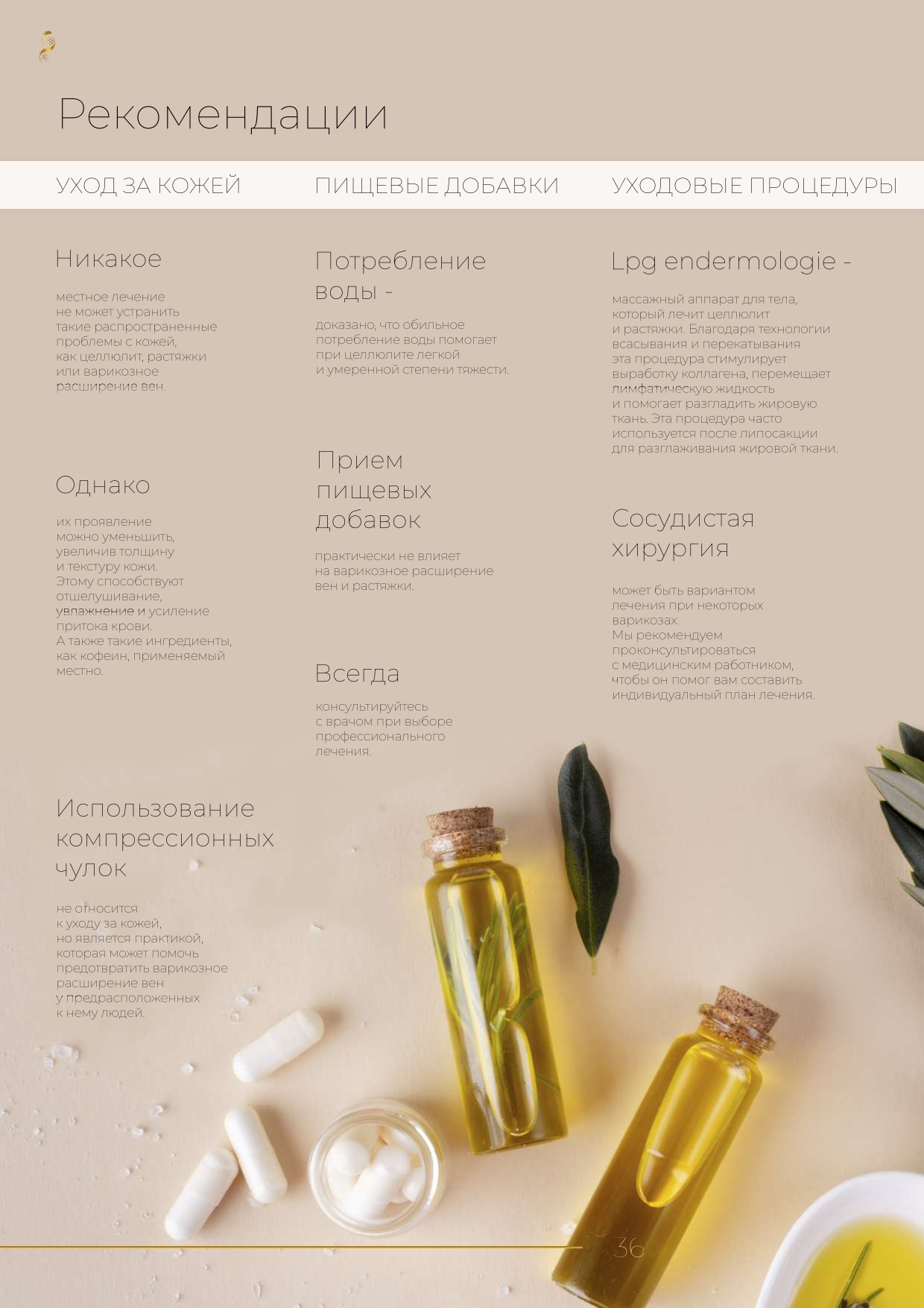 - пищевых добавок и витаминов для внутренней поддержки здоровья;